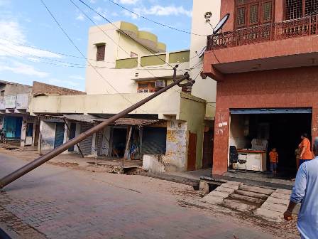 रबूपुरा। सोमवार सुबह आबादी के गुजर रही हाईटेंशन लाईन का एक जर्जर पोल अचानक एक मकान पर गिर पड़ा। जिसके कारण विद्युत तार मकानों से टकरा गये तथा एक मकान का छज्जा भी क्षतिग्रस्त हो गया। हालांकि गनीमत रही कि उस समय लाईन में करंट नहीं था अन्यथा बड़ा हादसा हो सकता था। आरोप है कि जर्जर पोल को बदलवाने के लिए कई बार विभागीय अधिकारियों से मांग की जा चुकी है लेकिन कोई सुनवाई नहीं हुई। लोगों के मुताबिक सुबह करीब 6 बजे मुख्य बाजार रोड़ पर सिनेमा हाॅल के समीप हाईटेंशन लाईन का एक पोल अचानक टूटकर गिर गया। जिसके कारण लाईन मकानों से टकराती हुई हवा में झूलने लगी। जिसे देख मकानों में रह रहे लोगों में हड़कम्प मच गया और वह भाग निकले। बताया जाता है कि गनीमत रही कि इस दौरान लाईन में करंट नहीं था तथा लाईन भी उपर ही लटकी रह गई। अगर करंट होता या फिर अचानक पोल नीचे गिरता तो कोई भी अनहोनी हो सकती थी। स्थानीय लोगों का आरोप है कि उक्त पोल वर्षों से जर्जर हालत में था जिसे बदलने के लिए कर्मचारियों से लेकर अधिकारियों से शिकायत की गई लेकिन कोई सुनवाई नहीं हुई। उधर उपकेंद्र प्रभारी जेई सतेन्द्र चौहान का कहना है कि क्षतिग्रस्त पोल के स्थान पर दूसरा पोल लगाकर आपूर्ति सुचारू कर दी गई है तथा अन्य जर्जर पोलों को भी शीघ्र बदला जायेगा।