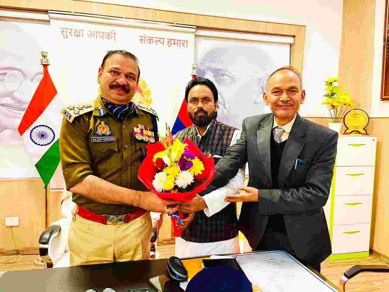 ग्रेटर नोएडा। नव संवत्सर 2026 की पावन प्रभात बेला में डी.आई.जी. एवं अपर पुलिस आयुक्त (कानून-व्यवस्था), गौतमबुद्धनगर डा० राजीव नारायण मिश्रा जी के कार्यालय पर शुभेच्छुकों का आत्मीय समागम देखने को मिला। नववर्ष के मंगल अवसर पर जनप्रतिनिधियों, समाजसेवियों एवं गणमान्य नागरिकों ने उन्हें शुभकामनाएँ प्रेषित कर उनके दीर्घ, यशस्वी एवं सफल कार्यकाल की कामना की। इसी क्रम में भारतीय जनता पार्टी, ग्रेटर नोएडा मण्डल के उपाध्यक्ष सुनील पंडित तुगलपुरिया एवं मीडिया प्रभारी भगवत प्रसाद शर्मा ने डा० राजीव नारायण मिश्रा जी से शिष्टाचार भेंट कर उन्हें नववर्ष की हार्दिक बधाइयाँ दीं तथा पुष्पगुच्छ भेंट कर सम्मान व्यक्त किया। डा० राजीव नारायण मिश्रा जी अपनी कर्तव्यनिष्ठा, अनुशासित प्रशासनिक कार्यशैली एवं निर्भीक निर्णय क्षमता के लिए सर्वविदित हैं। कानून-व्यवस्था को सुदृढ़ बनाए रखने, अपराध नियंत्रण, जनसुरक्षा तथा पुलिस-जन संवाद को सशक्त करने में उनका योगदान प्रशंसनीय रहा है। गौतमबुद्धनगर जैसे संवेदनशील एवं तीव्र विकासशील जनपद में उन्होंने शांति, सौहार्द एवं विश्वास का वातावरण स्थापित करने हेतु निरंतर सक्रिय रहकर उल्लेखनीय उपलब्धियाँ अर्जित की हैं। उनकी कार्यप्रणाली में सेवा-भाव, मानवीय संवेदना एवं प्रशासनिक दक्षता का अद्भुत समन्वय दृष्टिगोचर होता है। आमजन की समस्याओं के प्रति संवेदनशील दृष्टिकोण एवं त्वरित समाधान की प्रवृत्ति ने उन्हें जनमानस में विशेष सम्मान दिलाया है। भारतीय जनता पार्टी, ग्रेटर नोएडा मण्डल की ओर से यह कामना की गई कि नववर्ष 2026 डा० राजीव नारायण मिश्रा जी के जीवन में नवीन ऊर्जा, उत्तम स्वास्थ्य एवं प्रशासनिक सफलताओं के नए आयाम स्थापित करे तथा उनके नेतृत्व में जनपद निरंतर प्रगति और शांति के पथ पर अग्रसर होता रहे।