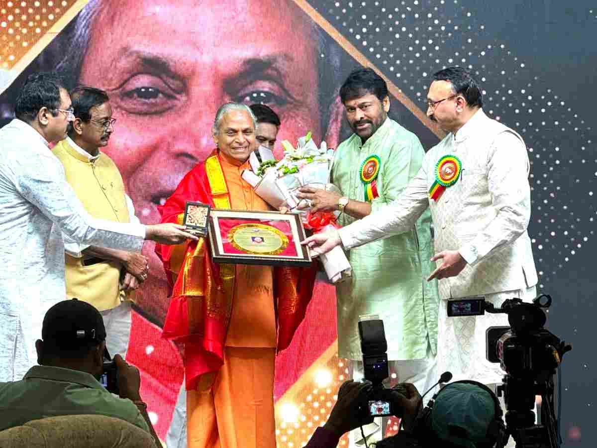 हैदराबाद। पद्म विभूषण पुरस्कार प्राप्त श्री चिरंजीवी ने 99TV के 2026 उगादि पुरस्कारालु पुरस्कार समारोह में योगदा सत्संग सोसाइटी ऑफ़ इण्डिया (वाईएसएस) को उत्कृष्ट आध्यात्मिक सेवा पुरस्कार प्रदान किया। इस प्रकार, तेलुगु भाषी समुदाय और विश्व में क्रियायोग ध्यान के प्रसार में एक शताब्दी से भी अधिक समय तक निरंतर उत्कृष्टता के लिए इसे सम्मान प्राप्त हुआ। सन् 1917 में स्थापित और विश्व स्तर पर निरंतर फलती-फूलती और विस्तृत होती रहने वाली, वाईएसएस क्रियायोग की व्यावहारिक पद्धतियां प्रदान करने वाली आध्यात्मिक ज्ञान की एक प्रकाशस्तंभ बनी हुई है।